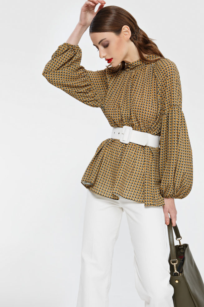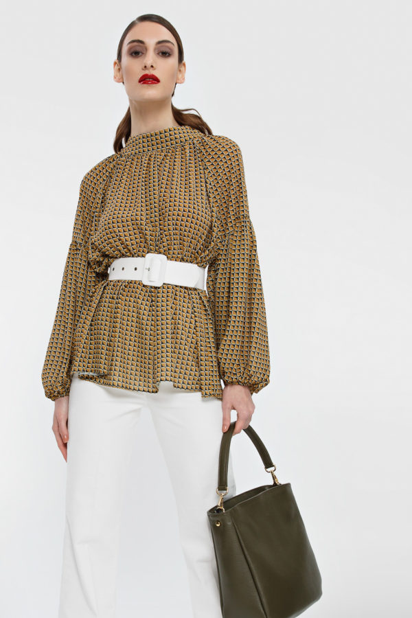 Πουκάμισο ζορζέτα όρθιο γιακά πίσω άνοιγμα και σούρα στο μανίκι