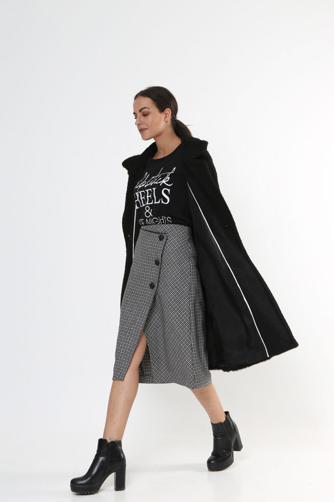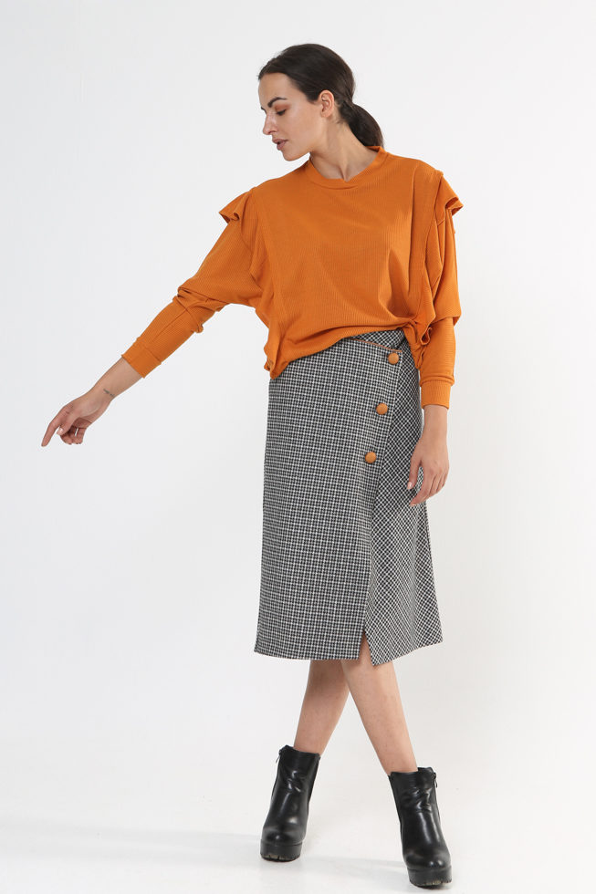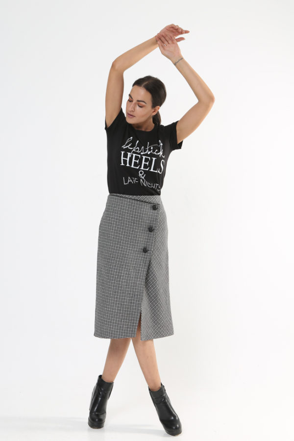 Φούστα μίντι απο καρώ σε άλφα γραμμή με κουμπιά