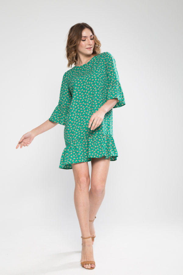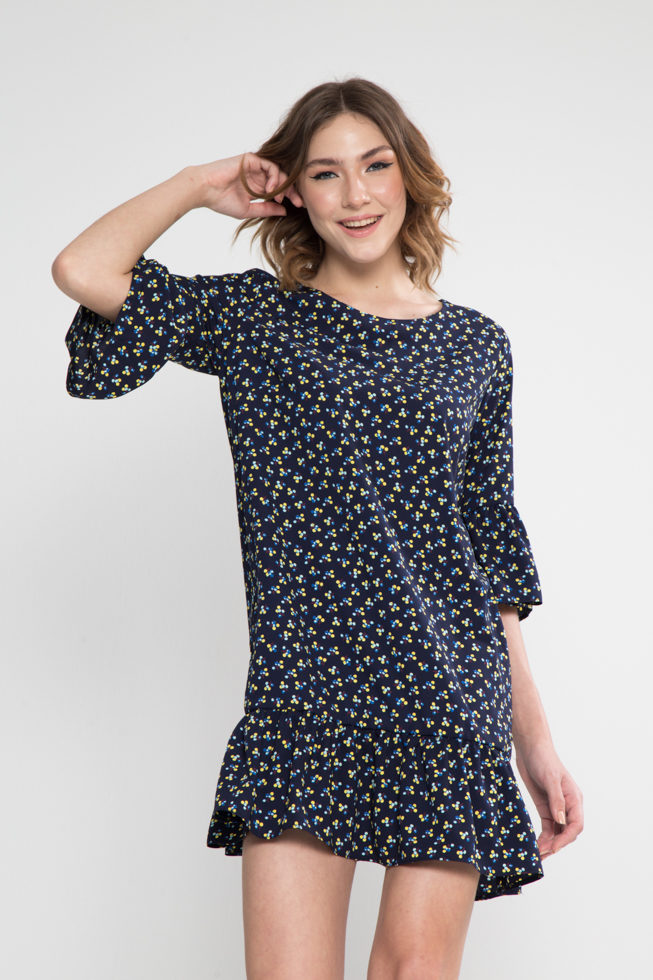 Φόρεμα κοντό με κουμπί πίσω φαρμπαλά