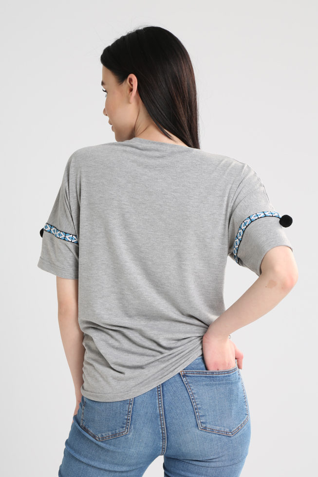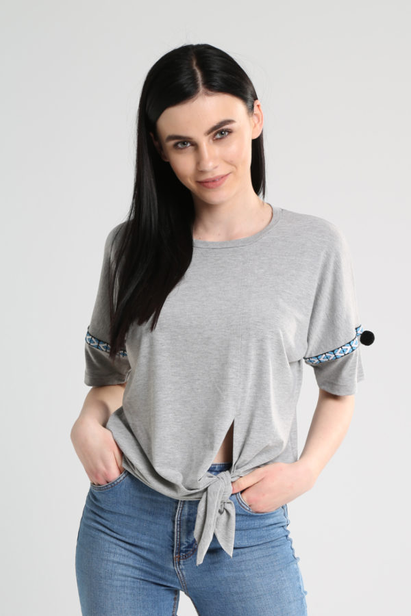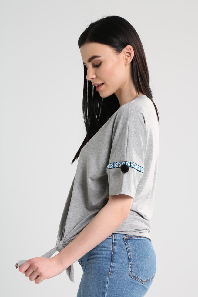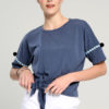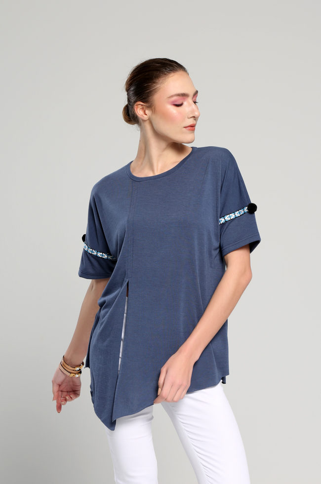 Μπλούζα πεσμένο ώμο σχίσιμο μπροστά με μύτες