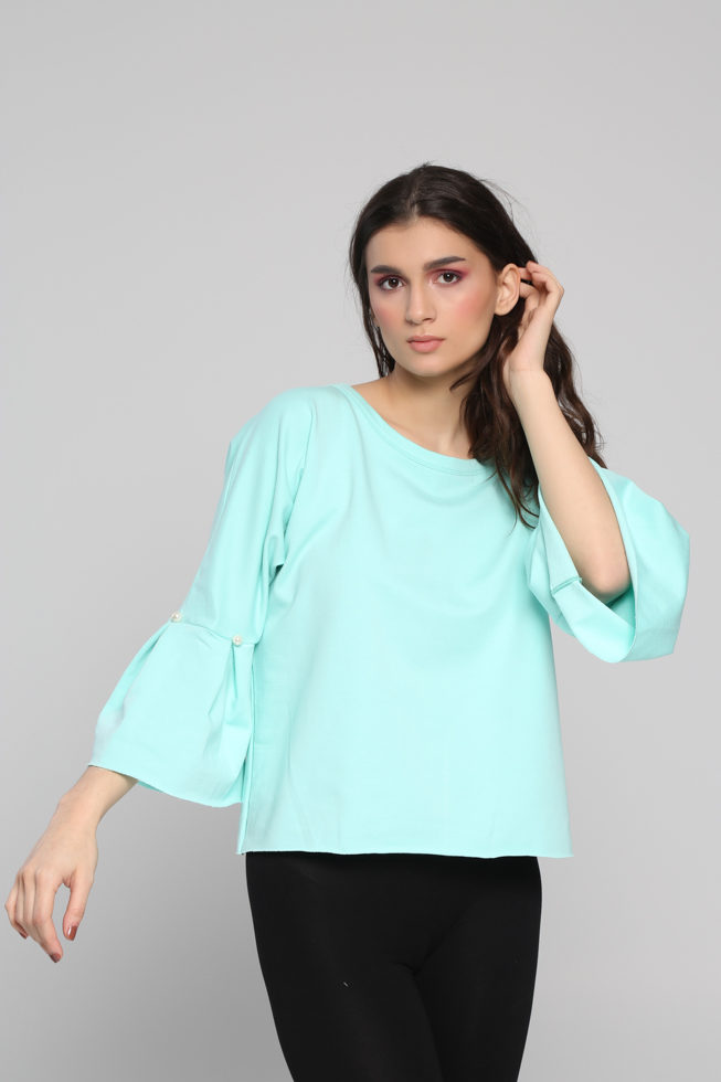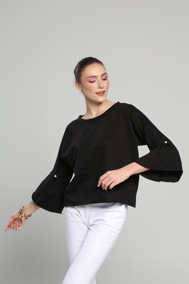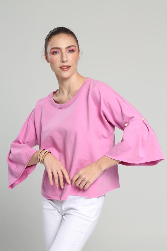 Μπλούζα με πέρλες στα μανίκια φούτερ