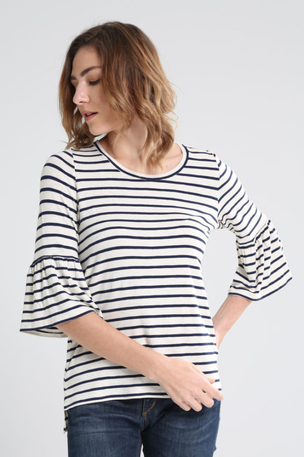 Μπλούζα με μανίκι σουρωτό ριγέ