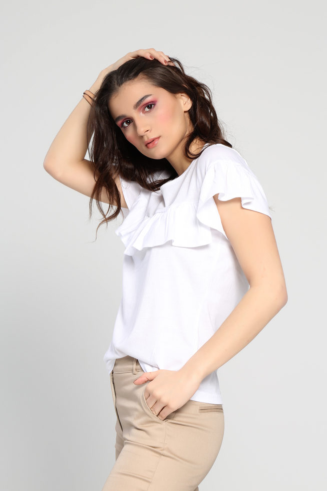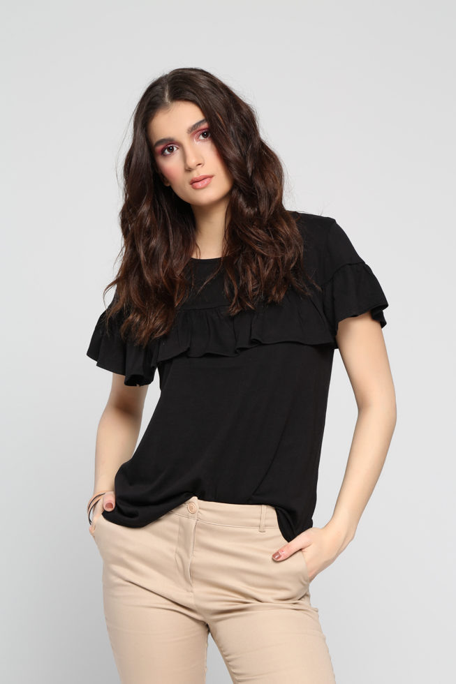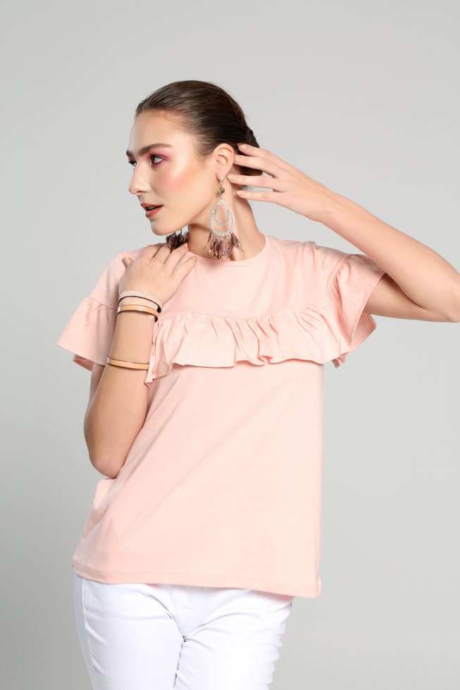 Μπλούζα κ.μ. βολάν μπροστά και στα μανίκια