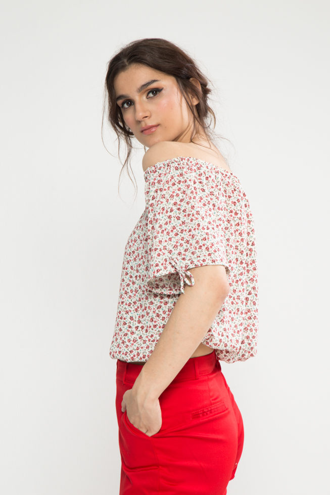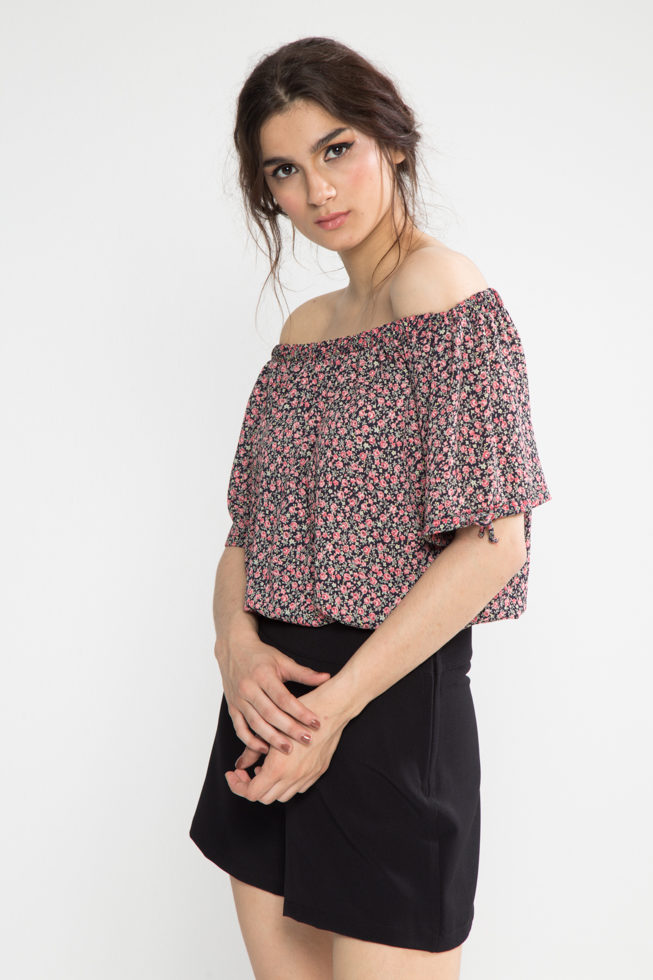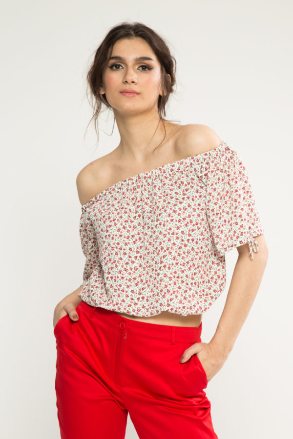 Μπλούζα βουάλ με ρεγκλάν μανίκι και μπάσκα λάστιχο